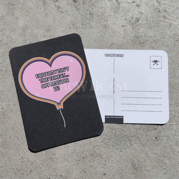Het zijn ongevouwen ansichtkaarten met afgeronde hoeken op A6 formaat. Het papier is gemaakt van 100% gerecycled papier en karton. Dikte is 300G.