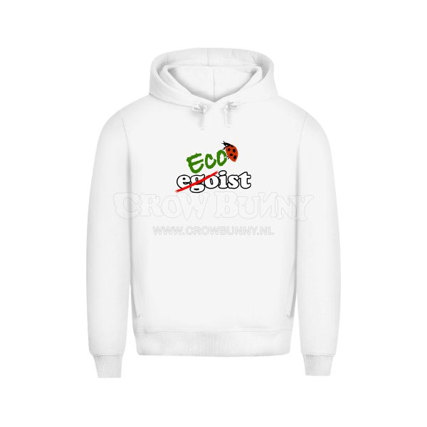 Deze comfortabele hoodie is gemaakt van zacht biokatoen en draagt een krachtige boodschap: ecoist, waarbij alleen ego is doorgestreept. Een subtiel statement voor wie kiest voor duurzaamheid boven ego. Tijdloos, bewust en heerlijk om te dragen.