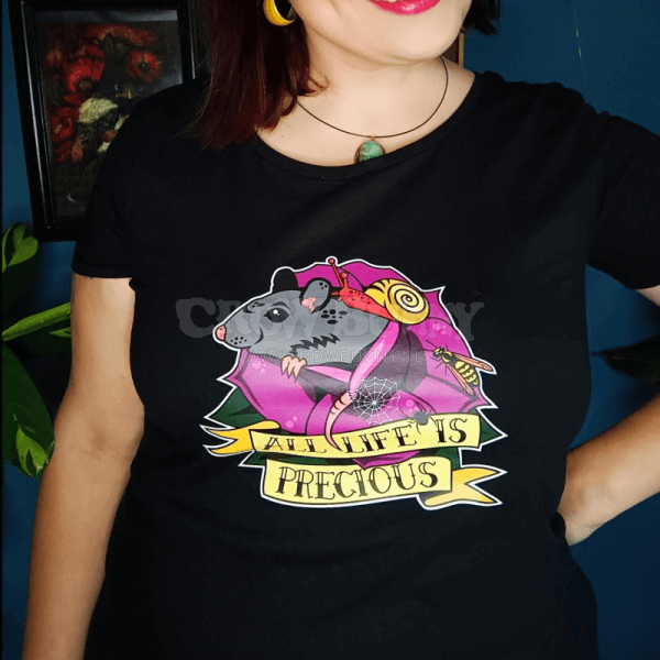 Bij de aankoop van ons "All Life is Precious" shirt doneren wij 10% aan stichting Rattenpootjes voor de opvang van ratten! Lees hier meer.